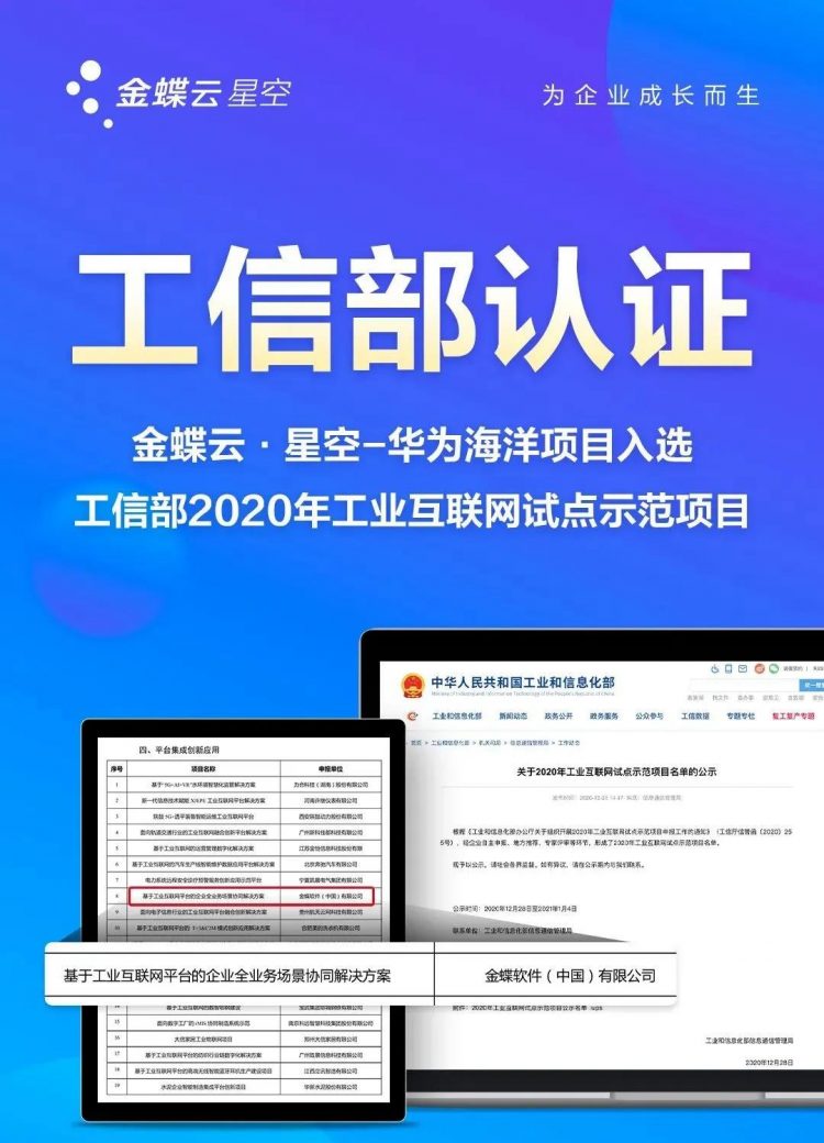 金蝶云·星空华为海洋项目入选工信部2020年工业互联网试点示范项目新闻资讯作者:云蝶科技2021年2月2日2020年12月28日,工信部官网发布了《关于2020年工业互联网试点示范项目名单的公示》,全国共有79家企业…